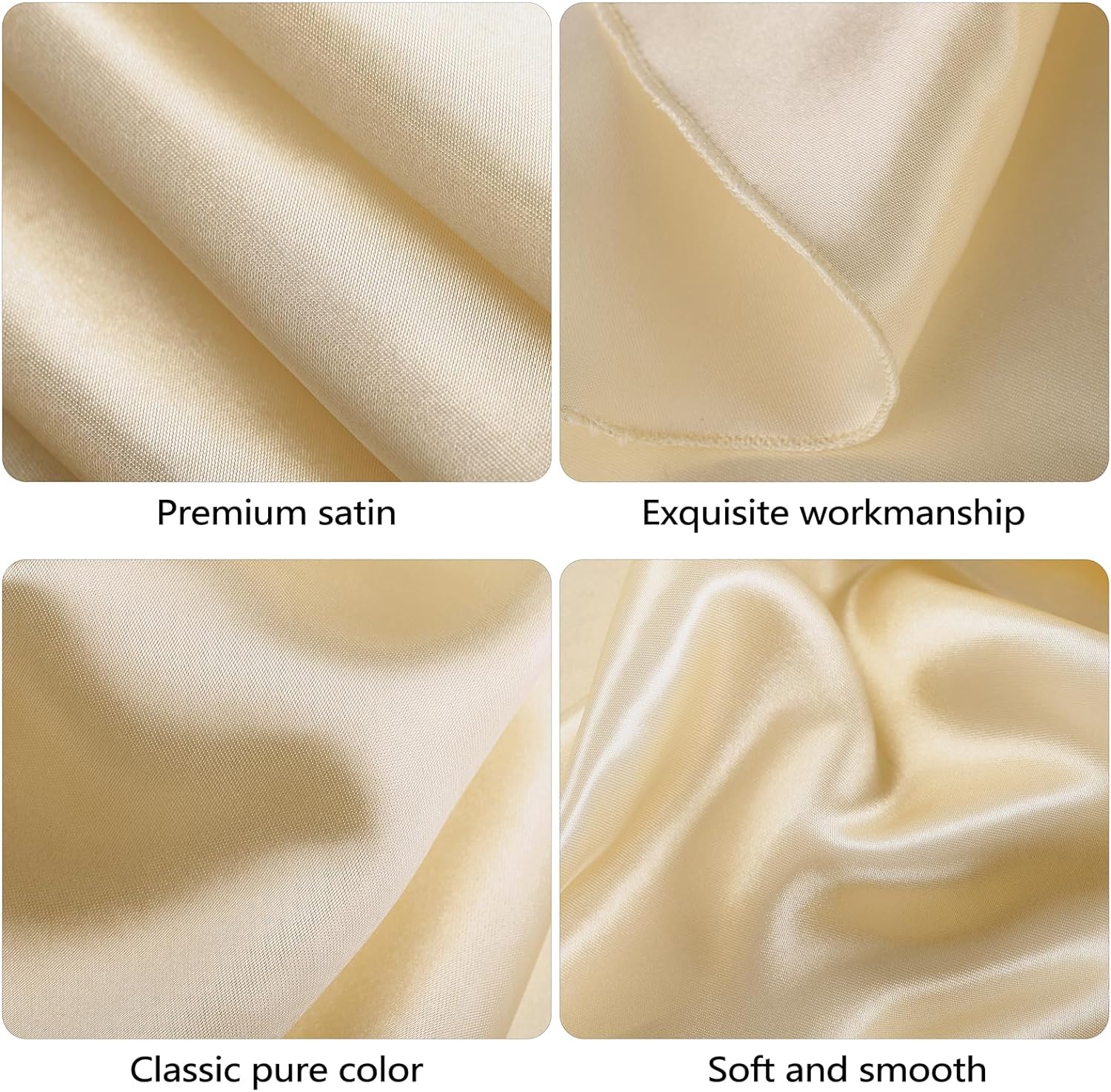- What you will receive: the package comes with 1 piece of oversized champagne satin table overlay cover, with the simple but elegant design, the basic solid color is hardly out of date, our satin tablecloth will bring a modern twist to your table's settings and let your tables sparkle brightly, boldly, and beautifully.