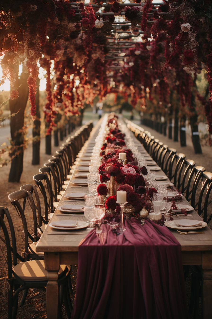 - Burgundy Table Runners Elegant Display: Rustic valentines chiffon table runner with gorgeous finished edges drapes gracefully across your table and flows onto the floor in dreamy pools of fabric.