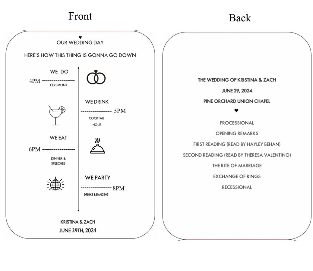 - 3) Will I get to see an example before you print? Yes, we always send proofs and you will be able to make changes.