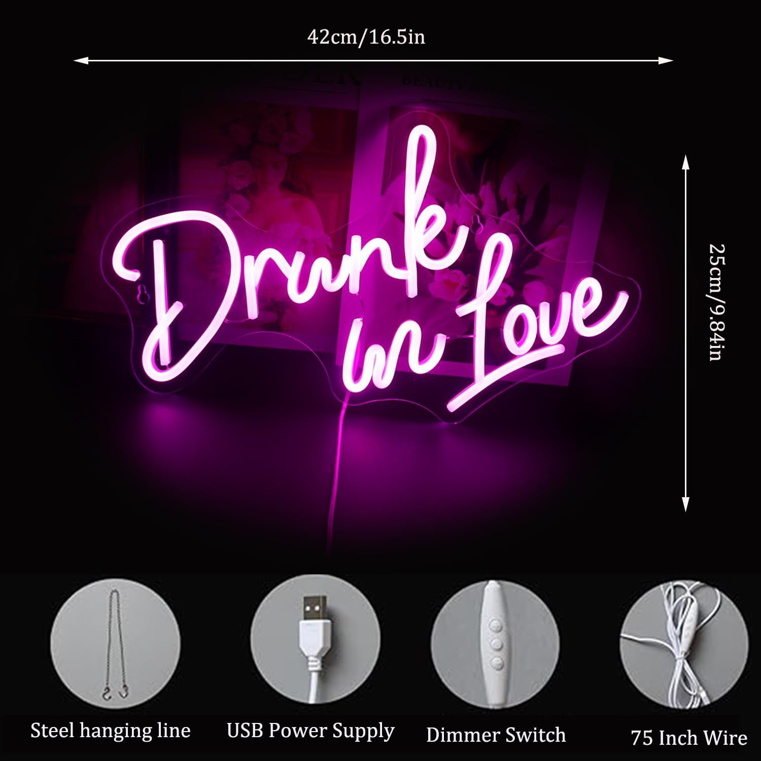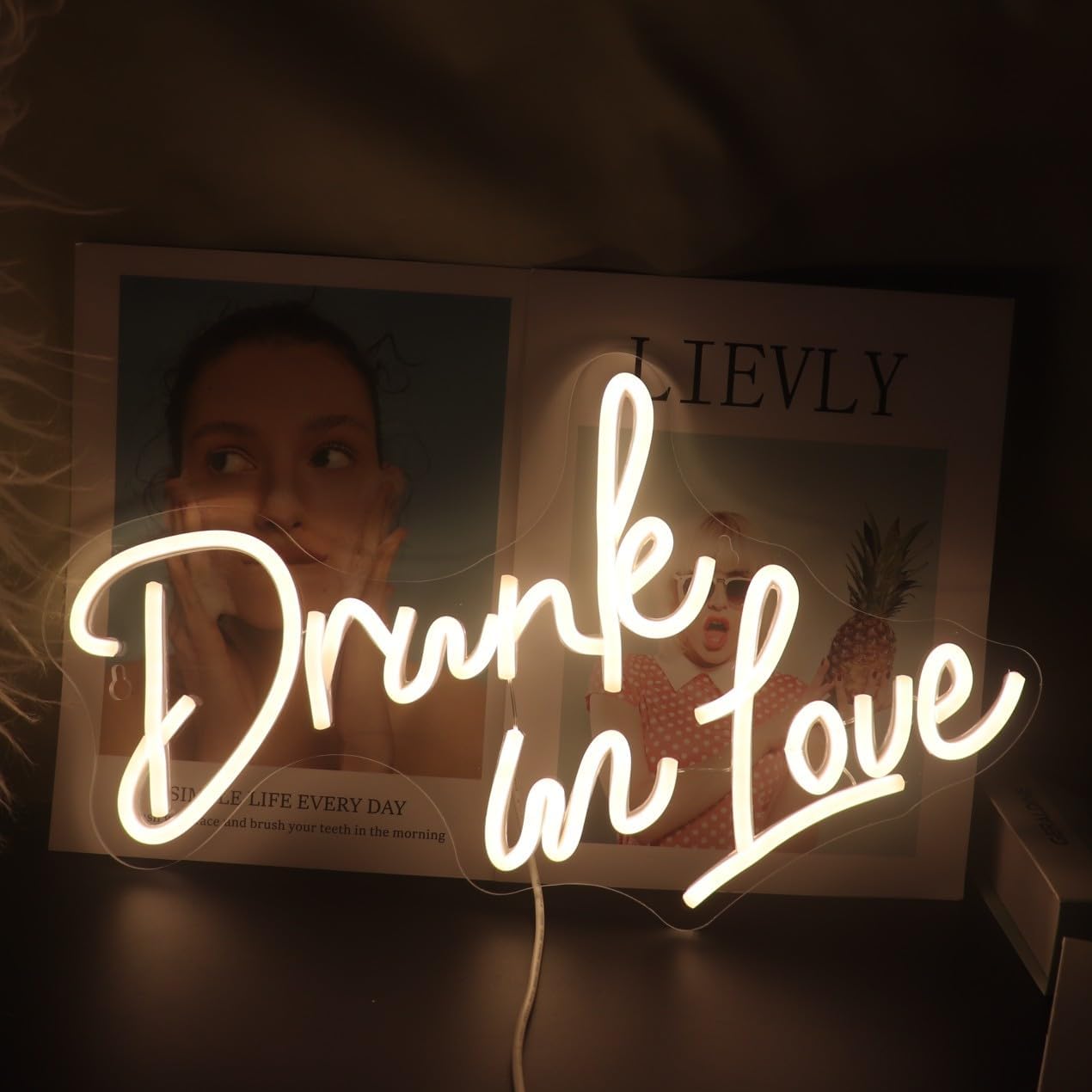 - UNIQUE DESIGN: This Drunk in love neon sign night light, creates dreamy and romantic ambiance to your place. It's suitable for wedding partys lovers'rooms, girls' parties, home wall decorations, bedrooms, living rooms, hotels ,bars.