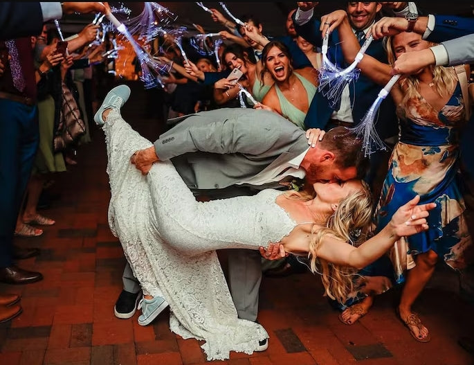 What a gorgeous sparkle! These wands are fantastic alternatives to sparklers and wonderful wedding supplies. Send the newlyweds off in a shower of safe light - they're lovely for nighttime weddings. The final photos of that special day will be filled with shimmer and shine.