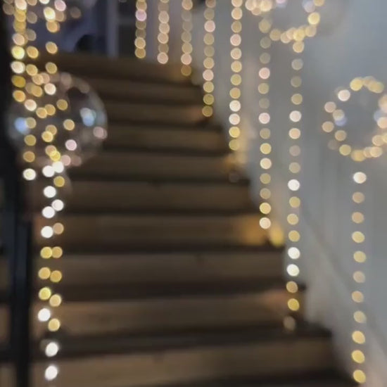 Each string light is 10ft long with 30 led bulbs. If you fancy longer string lights for the balloons we also have string lights in 16ft.Click here to buy!