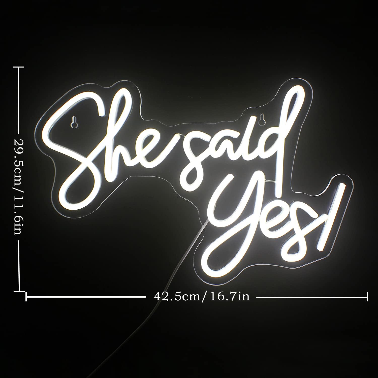 - 💍SHE SAID YES NEON: To bring more surprises to your marriage proposal, we designed this neon sign. Warm white lighting brings you a warm and romantic atmosphere, making your proposal or engagement ceremony unforgettable for a lifetime!