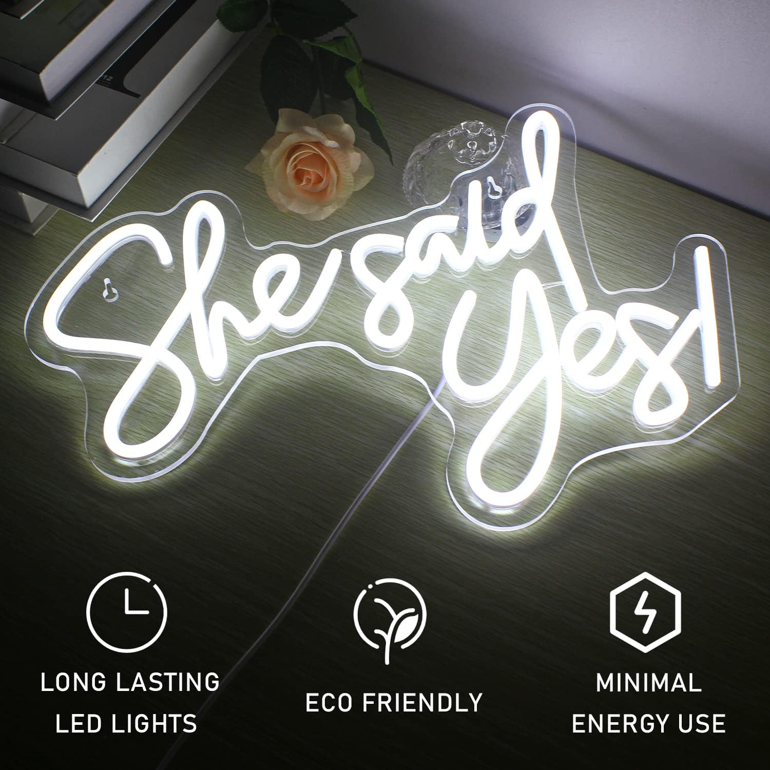 - 💍SAFE AND DURABLE: She said yes LED neon signs is made of top-quality flexible silicone LED strip lights and sturdy & lightweight acrylic plate, long service life, uniform light, no noise and heat, suitable for various scenarios.
